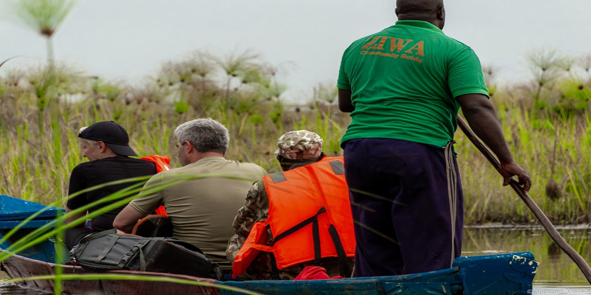 The captains were not lying. They got us to the shoebill and we quickly take some photos and videos. As we close in, it flies away. We see where it lands and try to approach it again. It flies off again and to avoid harassing it too much we turn back. We are happy we got to see the shoebill, but slightly disappointed that it was quite far and we didn't get the footage we hoped for. Our confirmation that it's still nature and you can't predict the sightings.
