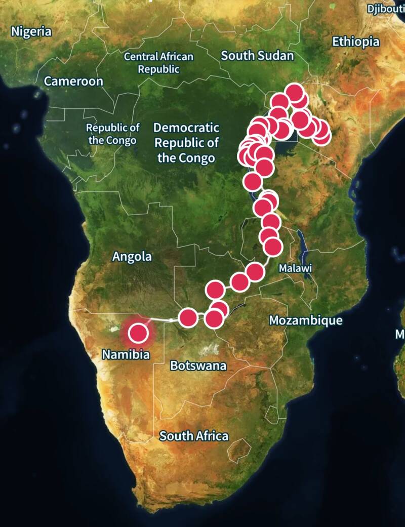After our time at Mbezi camp, it was time to move on. We wanted to drive south, to a popular camp called 'Roy's rest camp'. The camp was 600 kilometers from Mbezi camp, so we were prepared to spend a very long day on the road, especially since we were hoping to stop in a town called Rundu, to have our SIM cards registered. Jeroen was able to use a hotspot from our neighbor in Mbezi camp, but after it said 'Registration successful', there was still no service at all.
