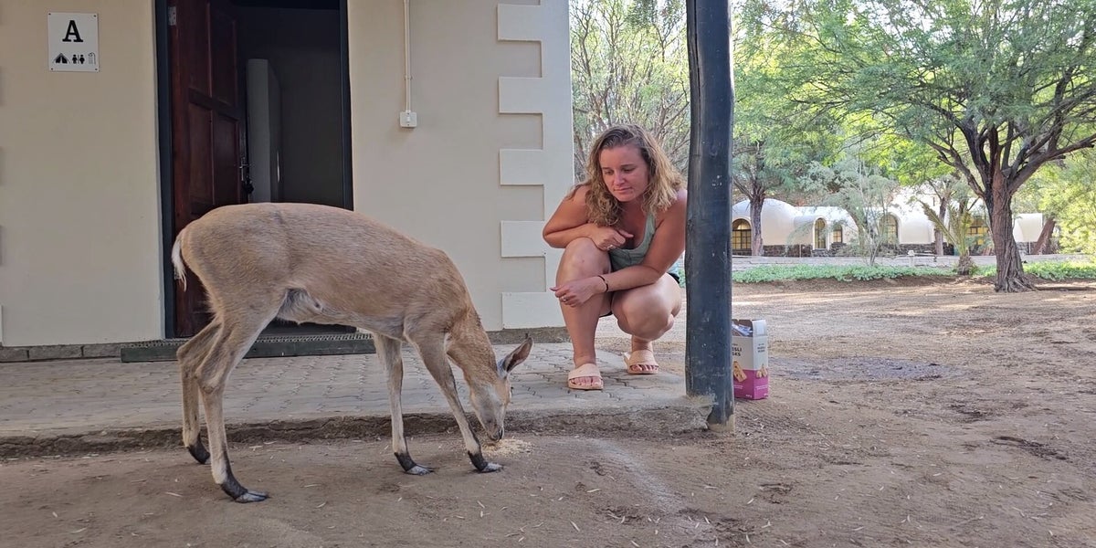 The campgrounds have a communal area with a restaurant, bar, swimming pool, fishing pond and a petting zoo. After the busy season, the petting animals are let to roam free on the grounds. This meant we had llamas, goats, ponies and a duiker visiting us regularly, to the point that it even became annoying. Try packing your camp with two curious ponies standing in the way, or try braaiing some nice steak when a duiker tries to steal your salad. We really had some hilarious encounters with these animals, but the funniest one was the cheeky duiker who liked the rusks we had bought. In fact, she liked it so much that she dove head first into the box. We were too stunned to act.