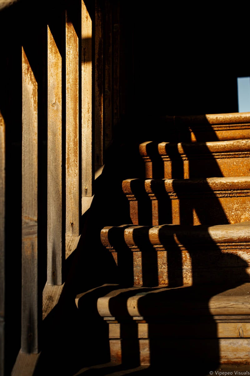 The tour was really wonderful and we immediately loved the place. The sand everywhere, the old houses and shops and all the history. We decided to stay, just spend the entire day exploring and photographing the town. We had a sandwich at the shop and went outside for more pictures. When everyone without the photography permit had left, we had the entire town just for ourselves. This was such a crazy feeling. A ghost town, all this history, and only the two of us to enjoy it. The abandoned buildings gave off a very spooky vibe, especially the old 'Krankenhaus' (hospital). This seemed to come straight from a horror movie. The long, dark hallway, doors slamming open and closed by the strong winds, the cracking of wood and screeching of metal sheets made it feel very eerie.
